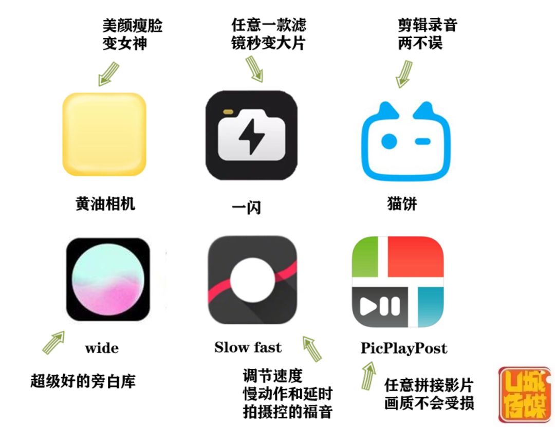 (使用女神同款贴纸) TIPS 拍摄风景或者实物的时候,可以随意转动手机镜头,上下左右前后多视角拍摄 使用手机的延时摄影和慢动作功能拍摄会给你的vlog不一样的惊喜哦 后期剪辑 04 制作VLOG有很多的软件 U仔在这里给大家推荐 两个容易上手的视频剪辑APP