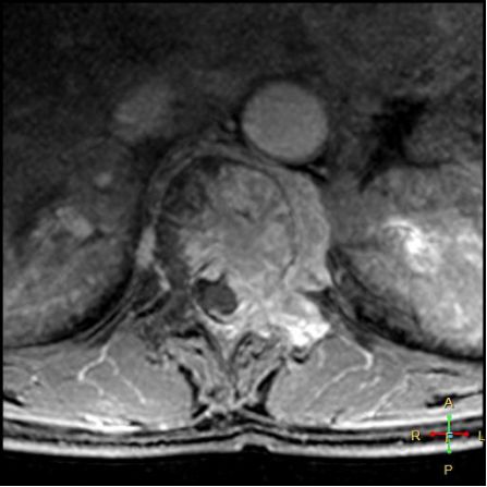 椎旁软组织肿块:在转移瘤中,受累椎体周围多出现分叶状或肿瘤样软组织肿块,此征象仅见于恶性压缩性骨折。故,椎旁薄环状软组织与瘤样软组织肿块是鉴别骨折性质较有特征性的征象。