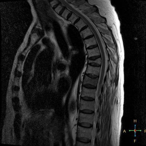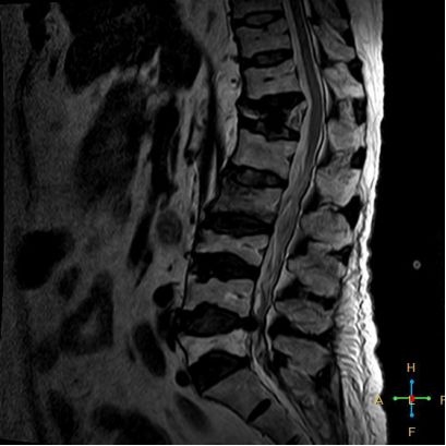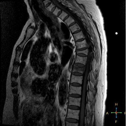 椎体后角回避现象:T1WI 椎体上部或大部呈低信号, 而后角信号不变。