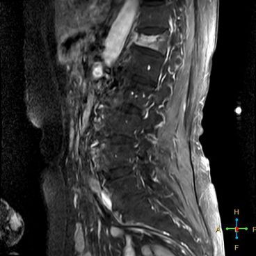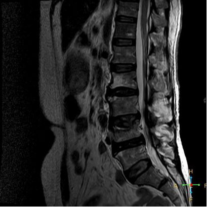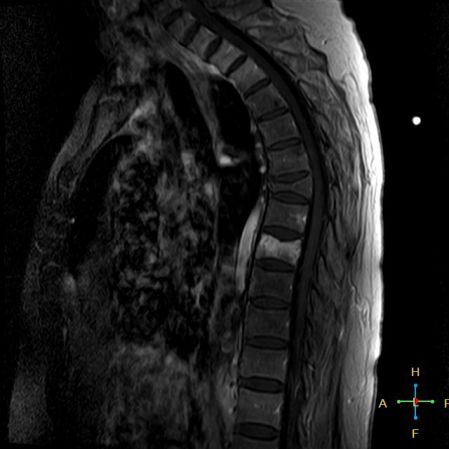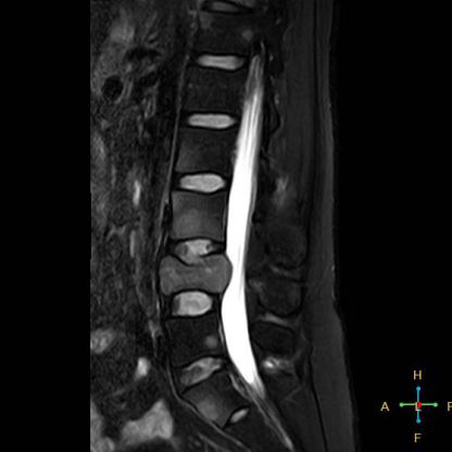 ——良性压缩性骨折MR信号特点—— 良性骨折的修复过程:缺血性变化--修复(骨髓水肿、血流增加或充血现象)--修复近完成(血流恢复正常)--慢性期(脂肪组织再生)。 正常成人:椎体为黄骨髓,T1WI 、T2WI 均为高信号。 当骨髓内出现水肿时,T1 低信号, 与残余的正常骨髓形成明显对比,所以椎体压缩骨折后,MR 信号改变以 T1WI 上观察最好;而在常规 T2WI 图像上,病变骨髓的长 T2 高信号与正常骨髓脂肪信号差别较小,不易观察;T2WI 脂肪抑制技术对于突出显示骨折区长 T2 组织信号具有独特优势,对于判断椎体是否发生脂肪变及骨折是否愈合也有一定价值。 急性早期,椎体压缩,局部缺血,骨髓水肿,T1WI 不均匀低信号,T2WI 高信号,增强扫描无明显的强化。 随后,骨折部位开始修复,血流量增加,增强扫描可出现明显的强化,平扫信号无改变。 慢性期,骨髓内脂肪组织再生,T1WI 椎体内呈混杂高信号。
