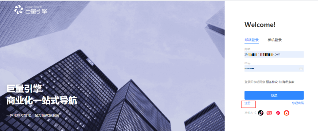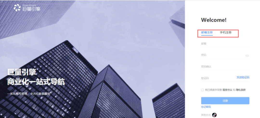 当前有如下两种入口可进入,完成注册