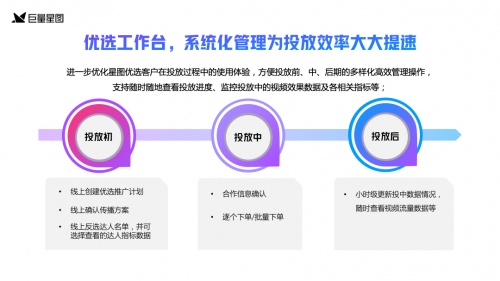 近期,巨量星图正式发布《星图优选营销通案2.0版》。 此次全新升级的通案2.0版,可以通过科学的数据模型,持续不断地优化达人投放的服务链路、扩充储备、提高效率,让用户更细致全面地了解星图优选的核心优势及服务能力,以及如何为达人营销提供全新生态型解法。 三大核心优势,推动行业生态优化发展 星图优选是巨量星图推出的达人营销解决方案,自上线以来,就通过一站式达人营销模式,助力客户、服务商和达人的三方合作降本提效。 星图优选凭借投前策略、履约服务、供给保障三大核心优势,快速解决了三方角色在合作中的品牌选号难、达人接单苦、服务商建联愁等痛点问题,优化了营销投放体验 。 在选号投放策略方面,星图优选通过多维度数据精细达人度量,并设置多种投放模型匹配营销目标,帮助品牌主科学地找到最适合的达人,让广告主的投放效果可以得到大幅提升。 在履约服务支持方面,星图优选针对达人营销特点与痛点,建立出一套完整高效的体系化服务,并严格遴选具备更专业执行能力的服务商,实现全面、高效的达人建联,让达人营销合作更有保障。 在供给储备方面,目前星图优选服务合作的优质达人储备已达到2万+,不仅覆盖多个垂直领域,还可以根据不同需求进行进一步细分。 同时,星图优选也还将通过评级、激励等方式不断扩充达人资源,为客户的达人选择提供更多可能。 四步全流程服务,让达人营销有的放矢 依托三大核心优势,升级后的星图优选服务以更加清晰的视角展现优选服务模式:一站式达人营销服务模式。通过需求拆解、选号策略、履约服务、数据报告四大阶段,为合作伙伴提供的全流程策略服务。 首先从需求拆解出发,星图优选服务将客户需求拆分为品牌宣传、电商带货、下载转化三大场景,根据不同的诉求为品牌主提供精准的定制化投放策略。 然后进入选号阶段,结合客户的投放需求与达人的匹配程度,星图优选建立3+1选号公式,高效筛选高匹配度达人,形成优质达人矩阵。 其次是履约服务阶段,通过优选路径,仅需3日就可完成建联、应约、确认等诸多环节,大大缩短了履约流程。同时,星图优选在选号能力、专业把控、履约能力、服务体验等方面严选优质服务商,保证高质高效的全流程服务。 最后是数据报告阶段,星图优选实现了覆盖前中后期的全程数据追踪,方便客户和服务商进行数据分析,对投放进行及时调整。 在此基础上,星图优选服务正式上线了优选工作台。通过优选工作台,客户可以对投放前、中、后期进行多样化管理操作,大幅提升了投放效率和体验。 效率效果双提升,合作体验更省心 凭借在达人选择、履约服务和数据分析等方面的强大优势,星图优选服务帮助多个品牌商家实现了品效合一的营销效果,展现了多方面价值。 首先,是策略能力强。在与某洗护品牌的合作中,优选服务针对该品牌购买转化的需求量身制定策略,合理分配剧情类、生活好物推荐类和美妆类三种内容占比,通过不同风格的内容形式,多角度演绎产品,实现了1.9%的购物车点击率。 其次,是达人优中选优。以网服行业的某社交APP为例,星图优选精选出了一批高质量的头肩部及腰尾部达人,多维度、多波次推动该APP实现多圈层深度渗透。 头肩部达人负责引爆预设话题,腰尾部达人配合多维创作相关推荐内容,带动下载转化。最终,该APP在抖音平台的搜索指数同比增长了56.6%,组件点击率提高了68.4%。 最后,是建联有保证。得益于履约效率的全面提升,通过星图优选服务首次合作达人建联成功率高达87.5%,远高于传统营销路径下的63%。 在与某速食品牌、时尚品牌和厨电品牌的合作中,达人均100%建联,保证了投放的效率。 在达人营销市场规模持续增长的大趋势下,此次《星图优选营销通案2.0版》给出了星图优选构建达人营销生态的最新解法。 未来,星图优选服务将持续发挥自身作用,不断优化升级,助力达人营销行业朝着更加健康的方向发展。 期待更多品牌、达人和服务商加入,与星图优选一起共创生产力更高效、生意更快增长、生态更繁荣的达人营销新可能。 |
