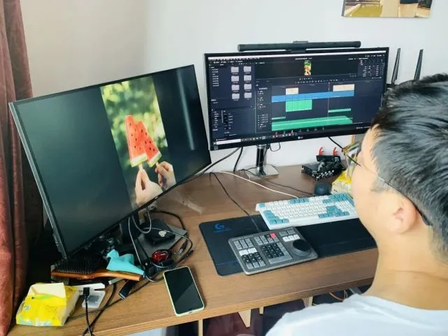 他们本来打算开一家甜品店,但是发现人力、时间不够。所以,2020年1月,她和她老公决定在家里创作美食视频,一人做,一人拍,成本相对更少一些。