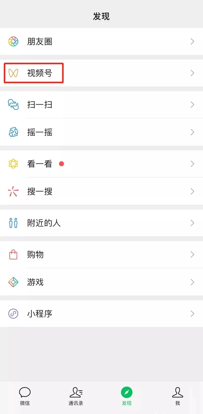 如何开通微信视频号 (附申请教程) 视频号已经上线了一段时间,在微信朋友圈下面一栏就是视频号入口。视频号是一个人人可以记录和创作的平台,也是一个了解他人、了解世界的窗口。 一、视频号的功能 视频号的位置在发现页列表中。已经拥有视频号功能的用户,可以通过该入口看到微信推荐的个人、机构等发布的图片和短视频。
