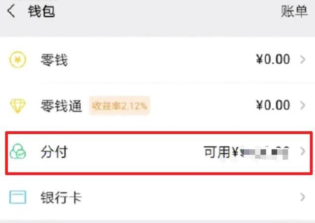 第四步:打开【我】-【支付】-【钱包】,如果银行卡的上方出现【分付】,那么就是开通成功了。