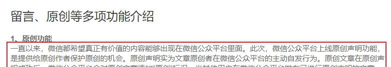 1.我们都知道,微信公众号有一个原创功能,,开通了以后可以进行原创声明。原创声明功能可以给原创作者保护自己的原创文章,在自己的原创文章上会增加原创标识。说白了就是别人不可以随意使用你的文章。
