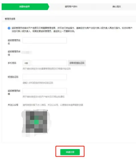 step4:登陆后,页面会自动弹出【创建申请单】,用户根据提示填写相关信息,确认提交后,等待官方审核。