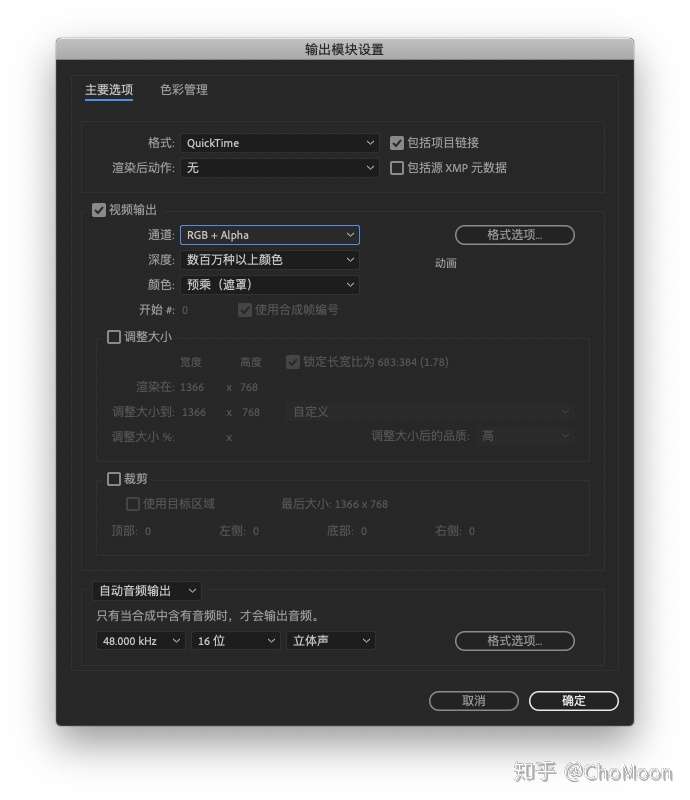准备动作Mac:先给AE安装一个ZXP插件安装应用,拖动文件到应用就可以。PC:你用sketch你告诉我你用PC? 安装完后打开AE,然后在ZXP安装器中拖进ZXP文件(AEUX中的那个)根据指令进行安装。  安装结束后Sketch和AE中安装一个插件AEUX就可以轻松实现Sketch、AE互相联通,双击sketch插件就可以安装。 重启sketch后点开插件打开面板,鼠标选中你要做动效的界面。 当然AE也要打开对应的插件面板。  打开sketch的面板后依次点击第一个和第二个按钮,然后AE这边会自动同步过来,自动新建一个一样尺寸的画板。  接下去就可以在AE中进行动效设计了。 …… 开始导出设计完成导出设计,选择导出到渲染队列选择输出设置,会弹出一个对话框如下:  如果有透明度的背景需要在通道中选择RGB+Alpha后导出mov格式的视频。 ⚠️注意:如果动效中有动效的内容是半透明的话是不能使用以上方式导出GIF图给开发的,那怎么办?接下去看。 - 如果半透明部分的背景图是纯色的,那么可以通过更改AE中对应色块的颜色来视觉上达到半透明的效果。
