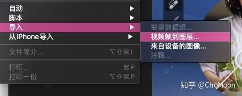 接下去的工作就在PS里完成了,点击PS中的文件后显示:  点击后选择刚才生成的Mov文件进行导入。 这里可能会出现的情况反向帧可能会出现在批量序列帧导入的情况中,这时打开动画时间轴(窗口那边打开),右上角点击后选择反向即可。  差不多就可以开始导出一个GIF试试看了。 第二次导出设置PS中点击导出:  PS导出设置另外值得一说的是小技巧: GIF压缩在PS中可以删除相同画面帧然后延长某一帧的停留画面来达到压缩GIF大小的功效。不用害怕时间缩短后带来的变化,可以多尝试几次。 基本导出GIF的整个流程就是这样的。 感兴趣的可以来我个人WX号灵感爆米花看更多~3Q |