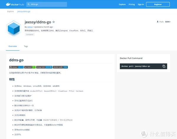 作者:川川川川桑 前言绿联作为大厂确实没食言,本来准备Q3上的Docker功能已经提前在6月30日就已经更新了,这两天也是抽出时间给大家写点教程,毕竟绿联作为轻NAS没有一些进阶功能,有Docker自己动手补上就好。 本文以绿联NAS系统缺失的DDNS域名解析为例,和大家分享Docker的基础知识与部署流程,觉得有帮助欢迎点赞收藏评论三联哈。 相关设备推荐日常列一下相关设备,感兴趣可以看下。 1NAS丨绿联 DH2600 关键词:颜值高、轻NAS、上手难度极低、N5105高配、双NVME固态硬盘位 简介:DH2600适合懒人和重点在文件、照片和文档管理的普通用户,和群晖威联通那种传统NAS完全相反,轻NAS上手难度低,看了就会用,CPU是目前逐渐替代N4xxx的N5105,主频睿频后可以达到2.9GHz,UHD600 24EU核显硬解高码率4K也时相当轻松,默认配置内存则是4G,支持自行更换,最大支持16G*2。 2机械硬盘丨希捷 酷狼 关键词:NAS专用盘、低温低噪 简介:希捷的机械盘现在几乎全线垂直,酷狼作为NAS专用盘目前价格也不是很贵,低温低噪音是最大的特点,绿联有硬盘套餐,懒人直接可以直接入。 3固态硬盘丨雷克沙 NM620 关键词:自动温控、最高1000T的TBW 推荐理由:如果为NAS上NVME的固态硬盘,最重要的是看工作温度,其次看TBW,NM620的主控设计了智能温度侦测功能,可以帮助降低NAS舱内温度,高TBW(1T版本500/2T版本1000)也能满足7*24小时加速读写的寿命需求,加上五百出头1T的价格,值得考虑入手。 4供电转接丨绿联 65W智充魔盒CUBE 关键词:氮化镓GaN、一分三、四口U口 简介:非常适合桌面使用的聚合供电方案,这款智充魔盒说白了就是四口氮化镓快充头+一分三转接的结合体,单C口输出最高支持65W快充,体积不大颜值也高,适合不方便使用传统排插的用户。 5组网路由器丨贝锐 蒲公英X1 关键词:SD-WAN、无线中继、旁路由 推荐理由:对于没有预埋线的房子,NAS放哪儿是个问题,X1作为支持无线中继的旁路由可以解决这个难题,同时自带贝锐的SD-WAN功能,联网后稍加配置即可加入组网,即使没有公网IP也能轻松搞定外网访问。 6电视丨雷鸟 S545C 55寸 关键词:棋盘式分区背光、MEMC、120Hz高刷、94% DCI-P3色域 推荐理由:绿联的NAS有专属的TV端App,作为TCL的性价比经典款,S545C一直卖的很好,毕竟三千多能入手的分区背光电视真不多,同价位基本无敌,动态补偿对观影的加成也非常高,预算不多的影音爱好者强烈推荐。 容器代码解析域名功能我选择DDNS-GO作为补充方案,毕竟这个项目支持阿里云DNS、腾讯云dnspod、Cloudflare、华为云、百度云这些主流服务,并且支持IPv6,比较具备普遍性: https://hub.docker.com/r/jeessy/ddns-go