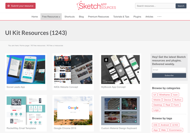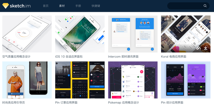 2.Mac字体管理工具:Rightfont:查看官方介绍与指南   四、设计灵感:包含Sketch和PSD下载1. UI8.net:高质量,设计资源交易网站,每个设计稿都不便宜,一个作品至少$20,话说资源,放上来会被和谐吗?在线等,挺急的。   2.Sketch Its Me:一个专注于 Sketch 分享交流的互动平台,更多更好的 Sketch 相关资源汇聚地。让每一位 Sketch 使用者都能轻松掌握 Sketch 中文站点,资源也算还可以,包括图标和各种UI设计稿都有,耐心找,也是可以找到好东西的。  3.Reeoo:什么资源都有,诸如UI、图标、甚至html都有,质量不错,分类↓  4.Sketchappsources:sketch资源站,在上面找到了不少很不错的资源,分类↓   5.Mobile-patterns:只有移动端界面,可以在左边菜单分类检索,诸如登录、列表、搜索常见的元素都可以找得到。  6. Pinterest:国外大名鼎鼎的收集idea的地方,国内的类似的就是 花瓣,比如要做登录,直接都关键词,如下图 ↓  国内Pinterest:花瓣  汲取灵感,这六个网站足矣~ 五、微视频现在很常看到网站把视频做成首页背景,不用按下播放按钮,就有动态显示效果 比如:手机淘宝app 下载页面  Coverr:就找到了一个,找到其他的再更 Coverr 提供的免费首页背景影片素材,这里的素材皆能在线预览、免费下载,而且使用上没有任何限制。 网站每周一更新七个全新影片,目前在这里也可以找到超过 200个以上短片。 版权:CC0 - 可商用,不要求署名。想怎么用怎么能够用,用的时候不用问作者授权,反正随便折腾。