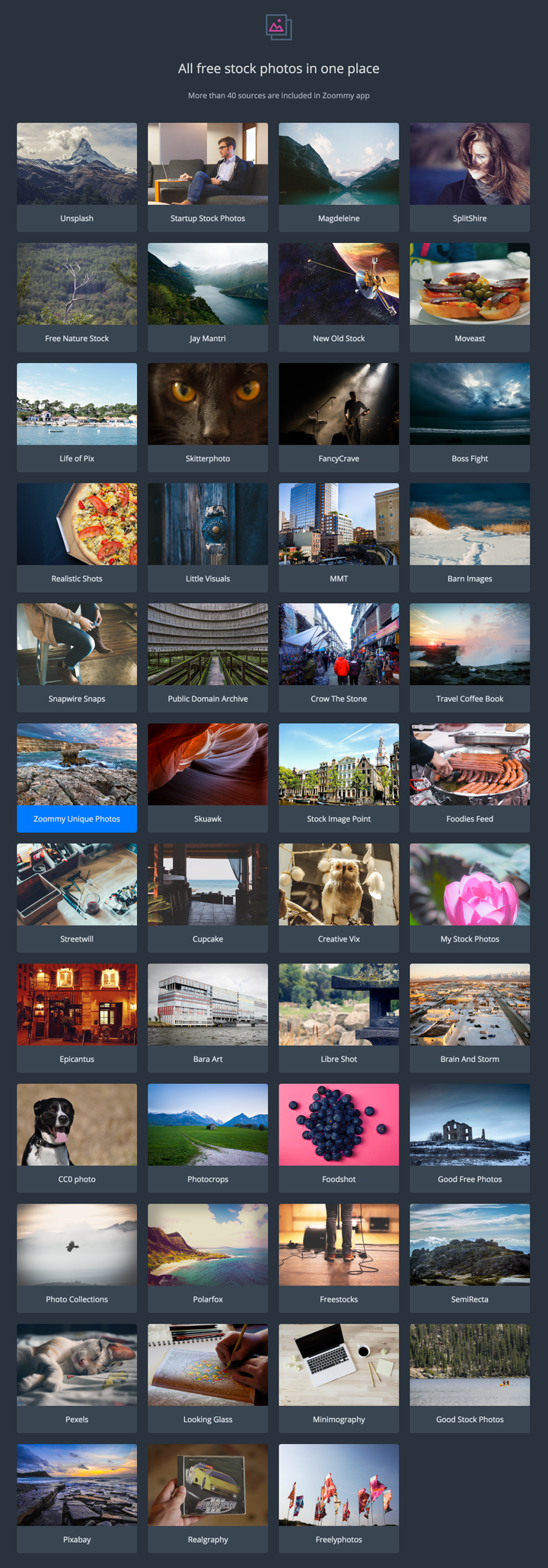 一、图片搜一下iPhone,百度是这样的: 其他素材网站是这样的,并且是5k的,两个差别有点大。。。 现在免费的素材也不少,而且有些还相当不错,比如上面的几张图片是不是看着很棒,跟百度简直是两种画风。感谢那些将自己的优秀的图片和作品版权授权大家免费使用的设计师,介绍几个自己常用的素材网站吧。 不打算介绍太多,多了你也记不住,只推荐精品:五个站点+一个图库源软件 1.Unsplash:五颗星 图片主要在人物、自然、生活类的比较多,素材5k像素。每10天更新10张,更新速度还行,毕竟人家都是高质量的图片。 版权:CC0 - 可商用,不要求署名。想怎么用怎么能够用,用的时候不用问作者授权,反正随便折腾。   2.Pexels:搜索很方便,首页下面就有热门分类标签和热门下载,图片各种类型的都有,比较丰富,风格偏商业化一点。图片质量也还不错,值得收藏。 版权:CC0 - 可商用,不要求署名。想怎么用怎么能够用,用的时候不用问作者授权,反正随便折腾。   3.Realistic Shots主要分为五大类:建筑、自然、人物、旅行、科技的素材为主,图片质量也挺不错。 版权:CC0 - 可商用,不要求署名。想怎么用怎么能够用,用的时候不用问作者授权,反正随便折腾。 上图感受一下:   4.Gratisography 这个用兔子作为logo的图站,图片主要集中于:动物,自然,对象,人物,城市,荒诞 重在个性,往往能发现一些很有新意的图片,够特别。我不会告诉你在上面发现了一张荒诞裸奔的皂片。 版权:CC0 - 可商用,不要求署名。想怎么用怎么能够用,用的时候不用问作者授权,反正随便折腾。   5.Pixabay界面是中文的,可以限制横图竖图,颜色,尺寸等,可以精确地调整搜索条件。图库大,但质量一般,需要淘一淘。 版权是CC0 - 可商用,不要求署名。想怎么用怎么能够用,用的时候不用问作者授权,反正随便折腾。   终极必杀器:其实还有一种办法比这一个个网站找方便多了,一个软件轻松搞定 Zoommy:一款多图库源管理应用,支持Windows/Mac/Linux Mac V1.1.0 百度云链接: https://pan.baidu.com/s/1i5Gyu81 密码: wrvf