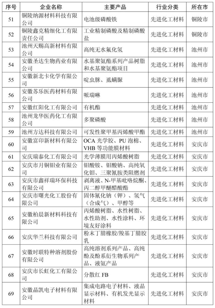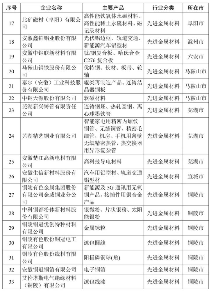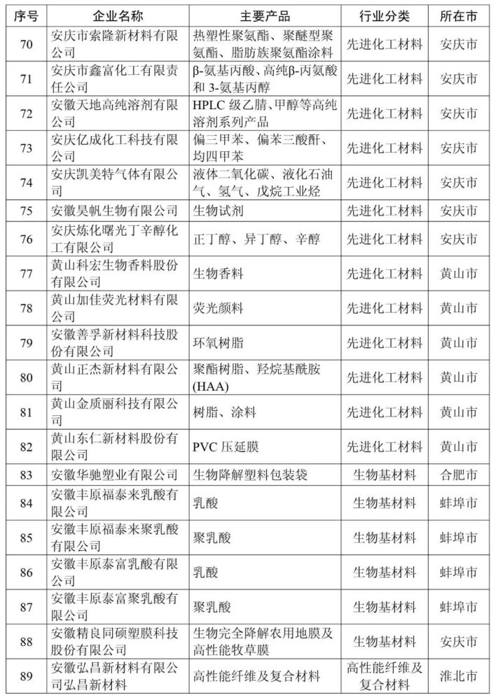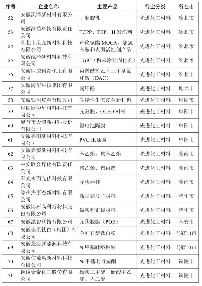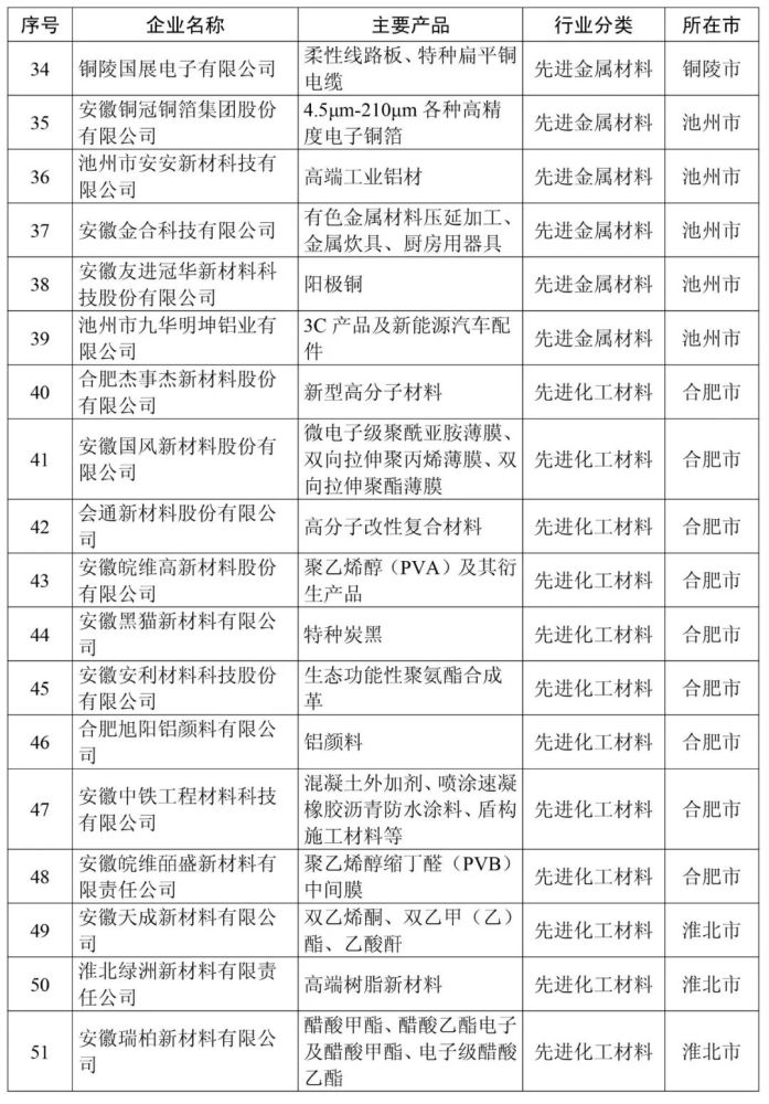 安徽省新材料产业高成长性企业清单(第一批99家)