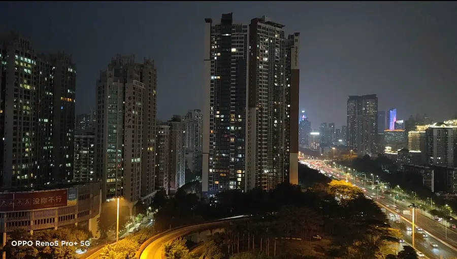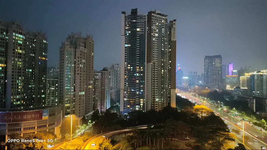 在实际体验中,加入了全新IMX766传感器的Reno5 Pro+的确有着更加出色的拍摄效果,在未开启AI夜景的情况下,Reno5 Pro+在夜景视频的拍摄上已经有较好的表现,整体画面纯净度较高。