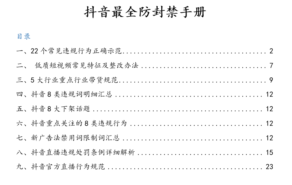 你反复去阅读理解这里的这个规定,尤其是我们禁止这一项里的这些内容,就一句话: 不要对抗平台,对抗抖音规则必死! 若你决定对抗,那么号就是你的军团。 而且你要理解,被举报很正常的,抖音举报窗口实在太多,举报文化实在太被鼓励, 只要你的内容让用户不舒服了,他随手就会给你点一个举报,所以账号都天天被举报很正常,所有操盘手要见怪不怪。 (江湖谣传,单号直播间被真实账号举报 30 次,必死。) 不被举报带来的最直接的结果就是惩罚,包括上传作品投稿限制、投放限制、评论区限制、私信限制以及抖音群的各种功能限制。 针对你的每一个违禁,抖音都有严格的惩罚的力度。所以还是要仔细阅读公约。 二,如果你被封,你可以做些什么?具体的步骤是什么?封禁是最高级别的惩罚。 封禁也很正常,没有被封禁过 30 次的人,不足以谈抖音操盘,不足以谈人生。 如果你被封禁的话,你应该抱着再也不能起号的心态,再也不找不回来号的心态去重新起号。 如果一定想把这个号救回来,下面步骤可能可以帮助你: 1,轻度违规,可以直接通过自主答题解除处罚 抖音官方还是愿意相信我们不是要故意违禁的,只是因为对抖音平台规则的不了解,所有可以先观看抖音的规则视频,回答100道题,哈哈哈哈哈哈, 非常狗的是100题都要答对,然后发布一个作品,可以解封了。 2,中度违规,一般都是搬运作品、低俗广告、过度营销等造成的 这种情况会被限流限发,作品不被推荐等处罚,需要删除违规作品,然后再去申诉就可以解封。 找不到申诉入口,可以拨打人工客服的方式找到,或者是通过邮件的方式进行解封。 3,重度违规,第一次永久封禁,认真写申诉材料,一定要表明态度。 一般来说,第一次封禁,抖音都会给你一个解封申诉的机会, 首先是找到解封的申诉入口,但不要急着去马上申诉,因为申诉是唯一可以让你获救的地方,而且常规渠道的申诉机会有且仅有一次。 你要做的是认认真真地组织一个申诉话术,基本的逻辑是: 第一,你不是故意违规的事,因为不清楚规则,所以误犯。 第二,将导致你账号被永久封禁的作品剪辑的资料截图,提交。 第三,表明态度,承诺自己以后一定会遵守抖音官方的规则,然后提交申诉,等待官方给你一个答复。 给大家看一下我一个会员当时写的申诉文案,是个bad case,