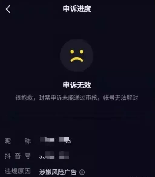 抖音是会给大家一次申诉机会,但是这个机会只有一次,而且申诉是需要特定的话术和申诉理由,并不是卖惨和说真话才可以被解封。很多人抖音被封禁以后,特别着急,特别生气,特别委屈,于是就随便写了一点东西,急急忙忙的就提给官方,结果99%的人申诉结果都是失败,于是账号就真的被永久封禁了。