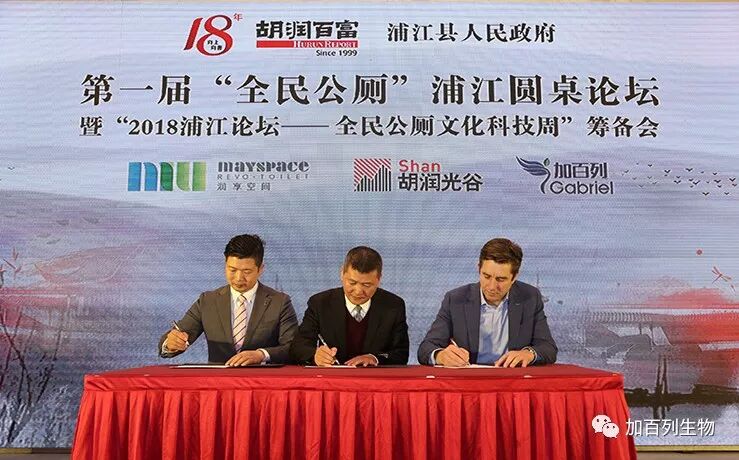 2017年12月19日,由胡润百富集团旗下企业胡润光谷、加百列生物携手浙江省金华市浦江县政府主办的第一届全民公厕浦江圆桌论坛暨2018浦江论坛—全民公厕文化科技周筹备会在浙江金华市浦江仙华国际会议中心举行。 第一届‘全民公厕’浦江圆桌论坛暨‘2018浦江论坛—全民公厕文化科技周’筹备会,研究探讨未来公厕文化与旅游智慧城市的融合,从厕所空间设计到如厕文化的整体产业链发展。受到浦江县人民政府的大力支持,为2018年最美公益设计师大赛的作品落户浦江进行预热,将浦江的人文自然环境和最美公厕结合,释放为民服务的公益力量。