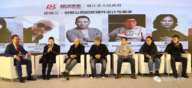 ▲现场来宾一同为浦江宣言揭幕 活动邀请到了浦江县人民政府县长丁政、副县长于文统、执法局局长马深源,中国科学院地理科学与资源研究所教授曹志强,浙江省海外高层次人才联谊会环境资源分会秘书长、千人计划专家王群英,浙江加百列生物科技有限公司董事长、千人计划专家张冲,一鸿管理总经理张铭超,浙江绿色文化科技促进会固废分会秘书长喻凯;副秘书长徐金全,湖北黄石金安投资集团有限公司党委书记、董事长、总经理柯跃涛;党委委员、常务副总经理王永贵;总经理办张伟、余华林,微塔环保科技有限公司董事长陈振浩,海高会电子信息分会千人计划专家李瑾晓,国创实业、国创股份董事、国创集团运营副总裁史钢锋,中金嘉禾(北京)投资有限公司董事长陈炫名等。同时,胡润百富总裁兼集团出版人吕能幸主持论坛,并与诸多知名华人设计师一同探讨创新公厕的软硬件设计与美学等话题。