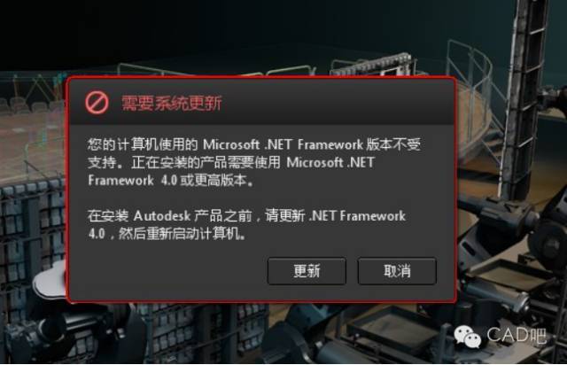 出现以上老是提示更新Framework 4 的情况,是因为你的电脑以前安装过低版本的autocad造成的。 解决方法是在控制面板中用卸载(比如360的强力卸载)低版本的cad和Frameword 4.0 并清除残留。然后重新安装autocad2012,如果还出现以上提示,就只有还原你的操作系统到未安装低版的CAD之前或重装操作系统再安装autocad2012 (欢迎参与右下角评论) 以下为赞助商二维码