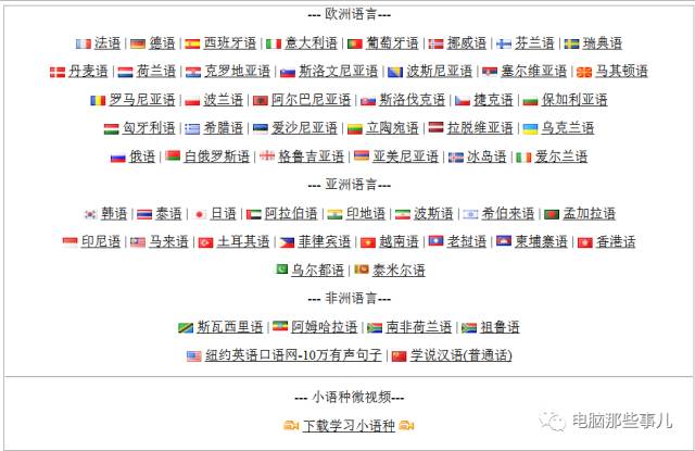 很多人学习外语,可能读和写都没有问题,但一开口就不会说了。口语也一直是人们学习外语的难点所在,小语种口语网为大家提供了非常丰富的小语种,法语、德语、西班牙语等等,你可以根据自己的需要进行选择练习。