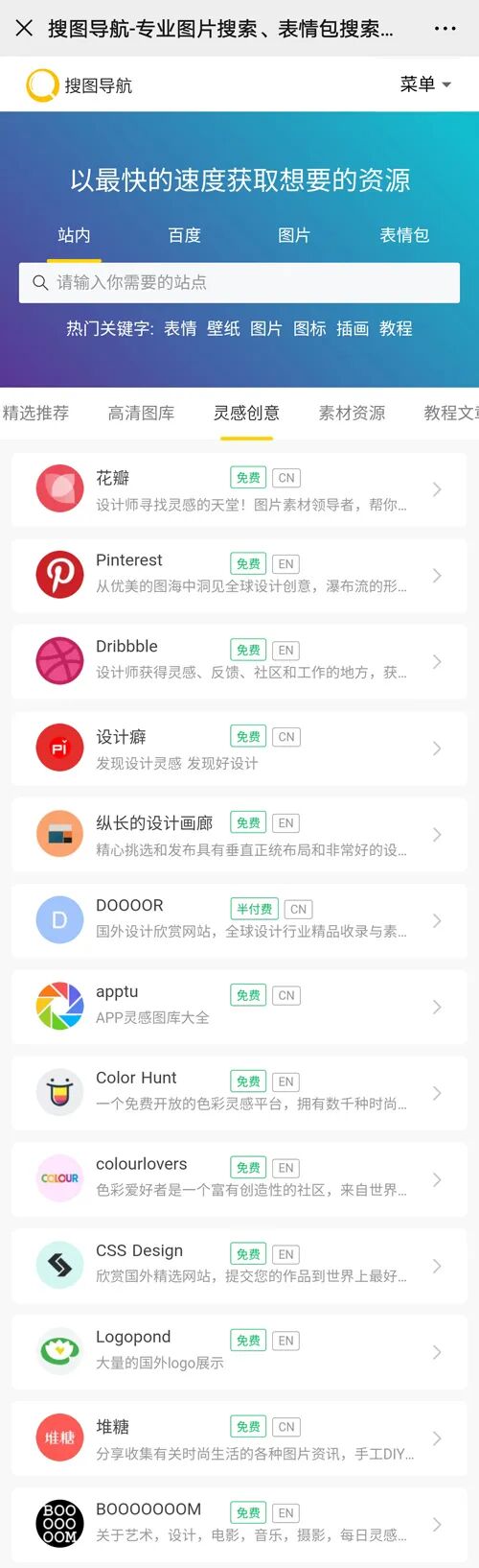 那这个网站就是一个不错的选择,虽然核心资源是图片类、设计类、素材资源类的导航网站,但其强大,令人折服