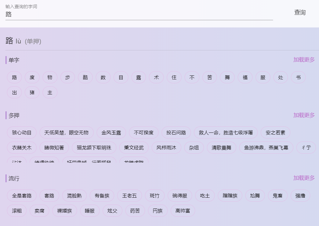 可以在线查询押韵的字、词、诗、歌等的网站,甚至支持尾字双押、三押、四押。