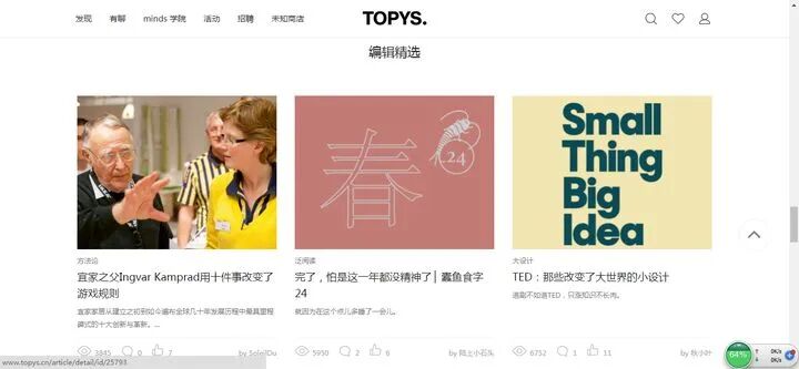 素材收集于互联网。 今日推荐22个许多广告人都在用的好网站,大家可根据需求,收藏起来备用。 1、TOPYS 广告、文案、创意、设计、艺术等方面都有涉及的创意分享平台,值得一看。