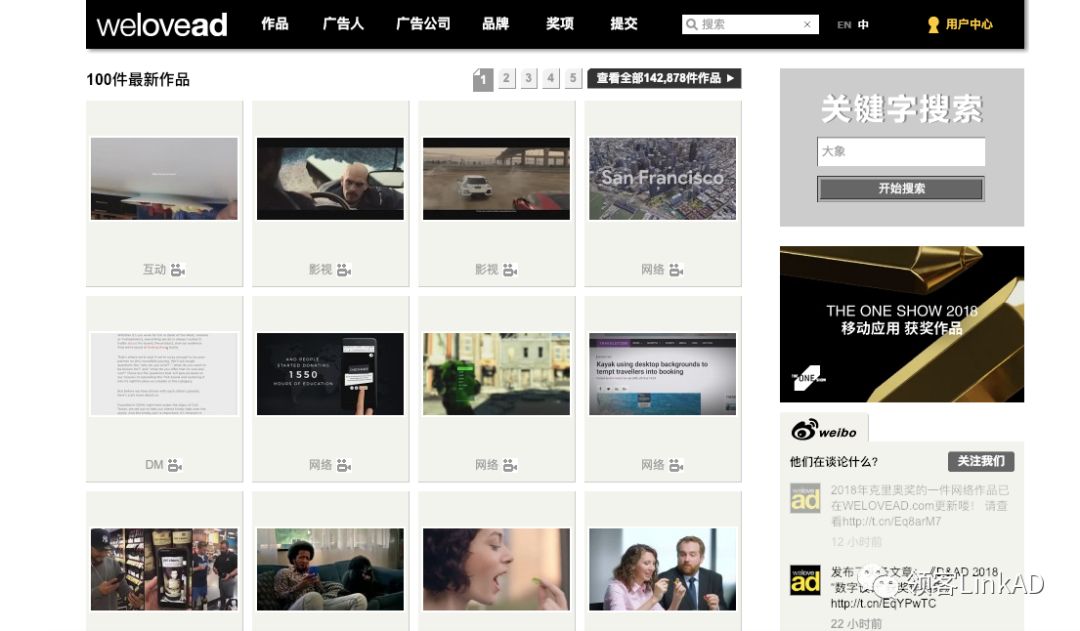 welovead每年全球各大广告奖项均有收录,包括:戛纳、金铅笔、莫比、金犊奖……等等,早期提供各奖项广告合集下载。广告点评以及作品出处都有记载!