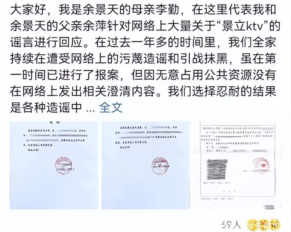 看到余景天母亲晒无犯罪记录证明之后,第一反应就是突兀,觉着事出反常必有妖! 一问 道理很简单,根据余景天母亲提供的图片,可以看到余景天父母的无犯罪记录证明开具日期为2021年5月4日。恰好在当日,《青春有你3》的录制被暂停,而隔天凌晨余景天宣布退赛。于是问题就来了,余景天方面究竟是出于何种考虑,为什么当时不公布无犯罪记录证明呢? 即便是退出了《青春有你3》,有了父母的无犯罪记录证明,也会让余景天的演艺之路平坦许多。放着如此有百利而无一害的事不做,却选择了忍气吞声,怎么想也不符合逻辑。 二问 其次,既然忍了这么久,为什么要在事件过去了一年多之后又主动回应呢? 对此,余景天母亲在博文中表示,因为谣言愈演愈烈了。这就有点儿牵强附会了,如果不是余景天母亲主动晒出无犯罪记录证明,大家几乎已经忘记这件事了。何况当下的娱乐圈异常热闹,前一阵子江小宴刚曝光了向佐的瓜,今天(2022年8月11日)下午5点又要曝一位杨姓5000万顶流的瓜。与此同时,董子健和孙怡官宣离婚、丁泽仁与站姐的爱恨情仇……总而言之,各种娱乐八卦层出不穷,谁还会去关注一年多之前的旧闻呢? 三问 还有一点,余景天母亲称在第一时间报警了,请问这个第一时间是指哪个时间点? 之所以有此一问,因为在余景天母亲提供的受案回执中,明确显示着报案时间是2021年12月29日。事件过去半年多之久,余景天方面才以遭到诽谤而报案,那么之前的七个月都在干什么? 值得注意的是,在2021年12月25日,余景天还参加了第十六届中国长春电影节闭幕式暨颁奖典礼,并与孟佳、朱正廷、黄龄一同演唱歌曲《奔跑的青春》。 这说明了一件事,起码在那个时间点上,余景天的演艺事业已然不再受到限制了。 醉翁之意不在酒 综上所述,余景天母亲突然间晒出无犯罪记录证明,总让人觉着醉翁之意不在酒。也许是文案不给力的缘故,有不少很难自圆其说之处,也可以理解为有些事情始终没有交代清楚。 有关余景天的争议,远不止其父母是否有犯罪记录,例如国籍。2019年,余景天在韩国参加《Produce X 101》比赛时,介绍自己来自加拿大。2021年,余景天参加《青春有你3》比赛时,介绍自己是作为唯一的中国人进入《Produce X 101》的决赛。换而言之,余景天要么在《Produce X 101》上撒谎了,要么在《青春有你3》上撒谎了。不论是哪一种情况,身为一名爱豆在公开场合撒谎,而且还事关国籍。单是这一点,便足以让余景天饱受诟病了,连最起码的诚实都做不到。 实话实说,个人猜测,余景天母亲此时晒无犯罪记录证明。大概率是源于余景天近期可能在演艺事业上会有所动作,至少是正在谋划着什么事情,有借助无犯罪记录证明上热搜来造势的可能性。 结语 这么做不是不可以,毕竟从余景天父母的无犯罪记录证明来看,当初余景天的确是含冤受屈了。但该讲清楚的事情还要讲清楚,比如说国籍,做错了就要道歉。只提自己的委屈,避开犯过的错,在大众看来就是不够诚恳。少一些套路,多一点真心,才会在娱乐圈走得更远! 个人观点,不喜勿喷。 |