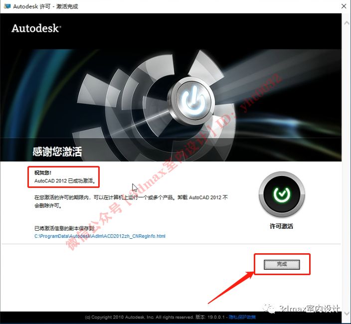 15、祝贺您,AutoCAD2012已成功激活,您可以永久使用,点击完成