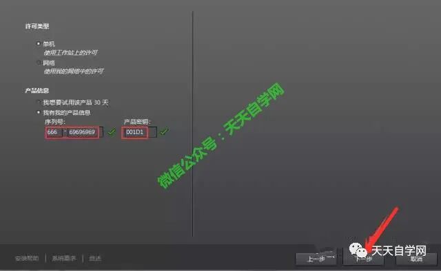 13.把申请号复制到注册机里面的Request中(记得删除原Request中的内容),先点击Patch,再点击Generate后复制Activeation中生成的激活码,然后粘贴激活码至我具有Autodesk提供的激活码方框中。最后点击下一步即可。