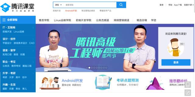 6、腾讯课堂 腾讯课堂凭借QQ客户端的优势,实现在线即时互动教学;并利用QQ积累多年的音视频能力,提供流畅、高音质的课程直播效果。