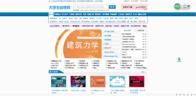 11、大学生自学网 提供经管营销、电气电子、计算机、机械土木、农林医药等大学课程,Ps、UG、CAD、Word、Excel等软件视频教程的我要自学网站。