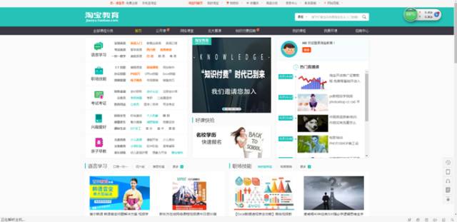 7、淘宝教育 淘宝教育精品课程,提供电子商务、公务员、考研、英语、小语种、口语外教、雅思托福、学历教育、考试认证、文体艺术、中小学辅导、亲子早教、生活百科、电脑IT、财务金融、营销管理、职业技能等精品课程培训学习。