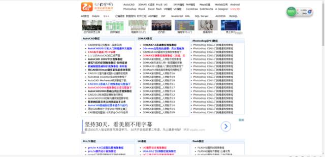 2、中国教程网 教程网是提供计算机相关图文、视频教程以及学习交流平台的综合性网站,特别是photoshop、illustrator、CorelDRAW等平面设计专业,3dsMAX、AutoCAD等。